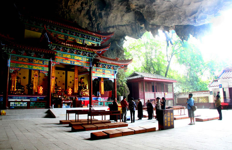 水源洞旅游景區(qū)位于凌云縣城北百花山下,距凌云縣城約1千米,也是廣西壯族自治區(qū)重點(diǎn)文物保護(hù)單位,百色市十八景之一。水源洞景區(qū)分為內(nèi)洞和外洞兩部分。洞外綠堤兩道,垂柳、古榕遍岸,飛鳥爭(zhēng)鳴,兩座對(duì)稱排列的石拱小橋,古樸典雅。洞內(nèi)有占地22000平方米、寬38米、高20.8米的大廳。洞門最高處的山崖絕壁上,刻有乾隆四十三年(1778)左江觀察使王玉德所題的“第一洞天”,大廳四周絕壁上刻有明、清以來文人墨客的題字、題聯(lián)、題詩80余幅,是凌云縣古石刻最集中、保護(hù)最完整的地方,展示了凌云近千年的州、府、縣建制歷史文化。