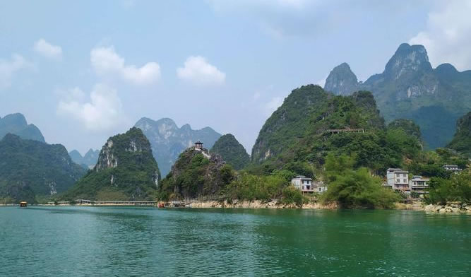 浩坤湖,位于百色市凌云縣下甲鎮(zhèn)和伶站鄉(xiāng)交界的地域,是澄碧河水系堵洞而成的湖,湖長(zhǎng)6公里,湖寬50至1500米。豐水期湖面面積約20平方公里。 浩坤湖發(fā)源于青龍山的澄碧河是珠江源之一,澄碧河水自水源洞噴流而出,先在洞口盤根錯(cuò)節(jié)的千年古榕下聚成一彎綠瑩瑩的湖,再流穿過凌云縣城中心曲曲折折地流出城外去。澄碧河穿過泗城,流經(jīng)一個(gè)叫下甲的地方,在彩架鉆入地下,潛行5公里后在弄盤露出地面,河水流經(jīng)下甲弄盤至伶站浩坤一帶受阻而成湖,這就是浩坤湖。 浩坤湖是凌云這高山林立的地方最大的一片水面,古時(shí)叫東湖, 俗稱高山神湖。湖山秀美、岸線曲折,島渚星羅,幾十座山峰緊緊挾攜著一湖碧水,湖內(nèi)島嶼交錯(cuò),水天一色,兩岸山奇崖秀:巨龍入地,掌上明珠、情蛙對(duì)語、望子牧歸、雞犬相聞、神駝昂首、相思?jí)艨M,岸上花艷竹翠,藍(lán)天青山倒映水中,山水天渾然一體,令人陶醉,湖面寬闊,水質(zhì)清澈,自然風(fēng)光十分優(yōu)美,岸畔竹影婆娑,釣翁頻現(xiàn),花樹掩映,黃髫小兒戲水,馬兒羊羔撒歡,老牛吃著嫩草,一派溫馨和諧、天人合一景象,是美麗南方中一片難得的自然景觀。具有良好的水上觀光、度假旅游的自然地貌基礎(chǔ)。