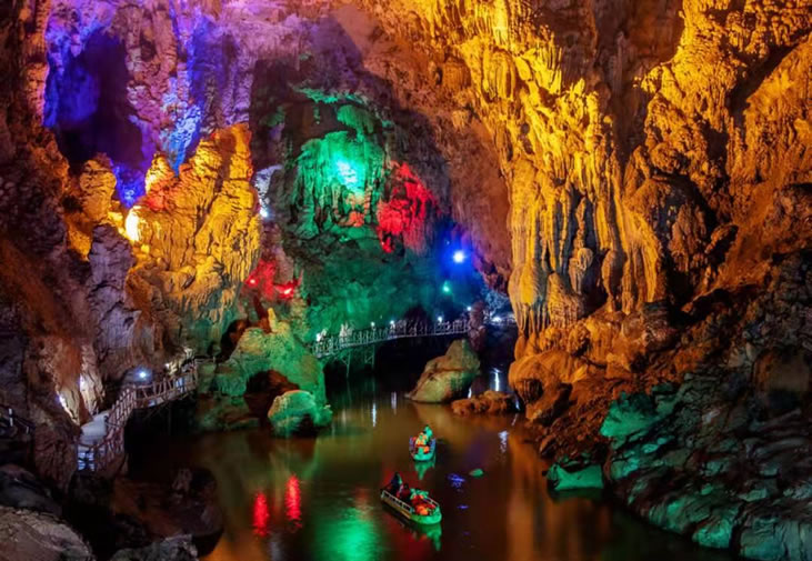 廣西平果通天河景區(qū)又稱“敢沫巖”、“紅軍巖”,是一個(gè)溶洞暗河型景區(qū),位于廣西百色市平果縣黎明鄉(xiāng)208省道旁。溶洞最大特點(diǎn)是面積大,總面積超過10萬平方米,其中“天上人間”面積3.3萬平方米;空氣好,6處洞口空氣通暢;空間高,最高的“九九洞天”99米;景點(diǎn)多,石筍、石柱、石幔、石瀑、石盾、石梯田、石鐘乳千姿百態(tài),鬼斧神工,20米以上石柱26余根;景觀奇,“神奇龍脊”長(zhǎng)達(dá)60多米,鎮(zhèn)洞之寶“金銀雙塔”各高達(dá)30多米。通天河景區(qū)于2013年被評(píng)為國(guó)家AAAA景區(qū)。景區(qū)位于廣西西南部中心地帶,東距大化紅水河28公里,可連接大化七百弄等景點(diǎn);北距巴馬縣63公里,208省道直達(dá),適合與巴馬連線旅游,可連接“東巴鳳”各景點(diǎn);西可連接百色、德天瀑布、通靈大峽谷等景點(diǎn);南距南寧190公里,可連接南寧、北海等景點(diǎn)。