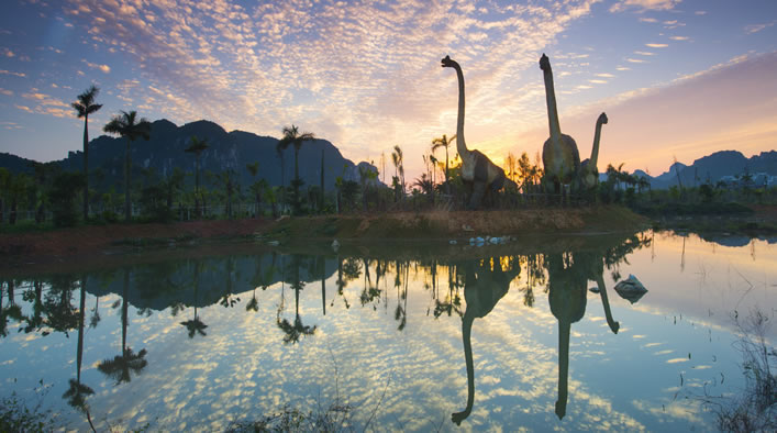 龍谷灣恐龍主題公園是國家AAAA級旅游景區(qū),位于扶綏縣上龍大道999號,距南友高速公路扶綏出口3公里。占地面積3000畝,是龍谷灣旅游休閑度假區(qū)的一期工程,于2017年元旦建成開業(yè)。公園由遠古呼喚、多媒體體驗中心、動感地帶、兒童王國、恐龍谷等板塊組成,是集科普研學、旅游觀光、游樂體驗為一體的亞洲最大的恐龍主題公園。龍谷灣旅游休閑度假區(qū)瞄準“3.5小時經(jīng)濟圈”休閑度假市場,突出恐龍文化和壯族民俗文化,規(guī)劃建設(shè)主題公園、特色小鎮(zhèn)、商業(yè)綜合體、田園綜合體、康養(yǎng)旅居城、體育旅游、智慧旅游、國際教育、民宿、汽車旅游營地等,形成龍谷灣恐龍公園、國際慢生活商業(yè)中心、錦繡八桂田園綜合體、國際酷玩休閑世界、國際共享康養(yǎng)旅居城五大區(qū)域。