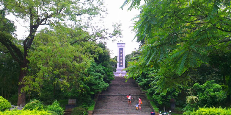 中越友誼公園總面積260畝。萋萋草木順著低矮的坡岡錯(cuò)落地生長(zhǎng)著。公園中心最高處矗立著“中越人民革命烈士紀(jì)念碑”。公園內(nèi)有1960年越南胡志明主席贈(zèng)送樹(shù)種栽的兩棵友誼樹(shù)。公園南側(cè)小山上,有在解放路戰(zhàn)爭(zhēng)中英勇獻(xiàn)身的陳漢東等六位烈士墓。陳漢東原名黃木芬,1937年參加中國(guó)共產(chǎn)黨,1945年6月在防城縣那良抗日武裝起義領(lǐng)導(dǎo)人之一。任欽防華僑抗日游擊大隊(duì)黨代表兼參謀長(zhǎng),于1945年6月底同敵人的一次戰(zhàn)斗中英勇?tīng)奚?959年移葬于此,墓碑上刻有“陳漢東烈士合葬墓”。從公園入口處,順著林間的小徑往右側(cè)山丘走去,走百多米,一座高聳的紀(jì)念碑便立于眼前。紀(jì)念碑正背面分別用中越文字題寫“光榮的人民英雄永垂不朽”,碑座正背面也分別用中越文字鐫刻著在抗法援越戰(zhàn)上犧牲的中國(guó)英烈名字。1958年經(jīng)東興縣人民委員會(huì)與越南海寧省政府商定,為在1954年的援越解放斗爭(zhēng)中犧牲的中國(guó)軍人立這座紀(jì)念碑。中越人民友誼公園,正是為紀(jì)念這份用鮮血鑄成的戰(zhàn)斗而修建的。