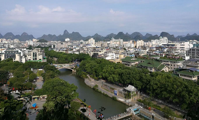 水文 象山區(qū)主要有漓江、桃花江、相思江、寧遠(yuǎn)河、南溪,以及杉湖,是桂林市“兩江四湖”環(huán)城水系工程、大型旅游景區(qū)重要組成部分。此外,在溶蝕、沖積平原中還分布著一些大小不一的河流、湖泊,如由萬(wàn)福潭沿上月山、佛殿村流入相思江的佛殿河,由芬塘村經(jīng)桂林市園藝場(chǎng)流入相思江的牛過(guò)河等。