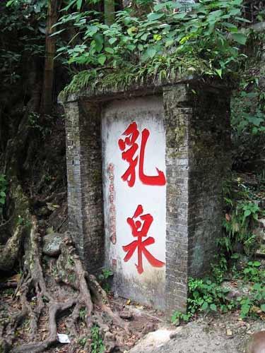 巨石底下就是"乳泉"二字,為古人所書。泉深1米許,冬不涸,夏不溢。據(jù)說當(dāng)時佛祖靜修時,在牧羊女的幫助下喝了一口乳泉的泉水,稍稍恢復(fù)了一點元?dú),在古榕樹下打?天7夜后得道成佛。