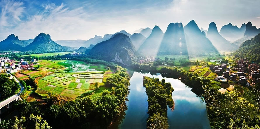 古龍河景區(qū),位于廣西宜州祥貝鄉(xiāng)古龍村,這里是廣西最后的山水凈土,有“世外仙境”的美譽,是國家AAA級景區(qū)、中國最美意境旅游景區(qū)。古龍河山清水秀,竹翠峰美,游客乘坐竹筏順水而下,可以觀賞到中國最大的壯族水車,體驗到魚鷹捕魚、江中漁韻的詩情畫意,欣賞到壯族古老的圖騰巖畫,感受到最有民俗特色的壯族情歌。在當地流傳著“桂林山水甲天下,古龍山水賽桂林”的說法。