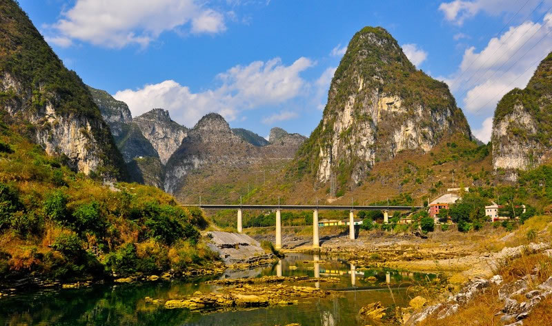 “峽比長(zhǎng)江峽險(xiǎn)峻,水比桂林漓深幽”,山峻、水清、峽幽、洞奇的“壯鄉(xiāng)第一幽谷”。六甲小三峽位于河池市金城江北郊21公里,景區(qū)面積約1平方千米,景區(qū)是典型的喀斯特地貌,形成山峻、峽幽、洞奇、水清的特點(diǎn),峽比長(zhǎng)江三峽險(xiǎn)峻、水勝桂林深幽,懸崖上460米長(zhǎng)的棧橋絕無(wú)倫比,把姆洛甲碼頭與電站大壩的天塹變成“天梯”,可欣賞到“高峽出平湖”的奇觀。沿途12公里20多個(gè)景點(diǎn)由天門峽、涼風(fēng)峽、龍門峽和漓江田園風(fēng)光組成。