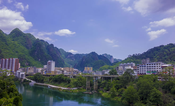 天峨縣,隸屬廣西壯族自治區(qū)河池市,位于廣西壯族自治區(qū)西北部,紅水河上游?h境東西長約77千米,南北寬約95千米。總面積3196平方千米。天峨縣是國家、廣西林業(yè)重點縣,全縣森林面積22.9萬公頃,森林覆蓋率達82.6%,素有“森林王國”“綠色寶庫”之稱,野生植動物資源種類繁多;紅水河流經(jīng)縣境112千米,水資源占紅水河流域總蘊藏量45%。全縣轄2鎮(zhèn)7鄉(xiāng),其中瑤族鄉(xiāng)1個,居住著壯、漢、瑤、侗、苗、毛南、布依、仫佬、水等20個民族。天峨縣常住人口為143155人。