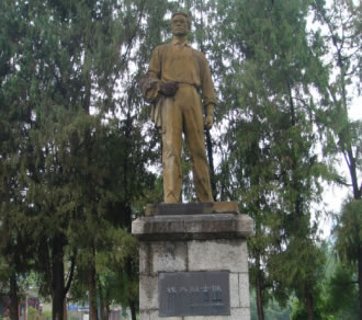 錢興烈士塑像矗立在黃姚鎮(zhèn)寶珠觀中共廣西省工委紀念館前的小廣場上,塑像高3米,玻璃鋼塑造。塑像基座高2.6米,寬1.5米,臺基邊長1.1米,臺下階梯三級總高0.5米,為花崗巖結(jié)構(gòu)。這一尊塑像是為了紀念中共廣西省第一任工委書記錢興于1986年興建的。