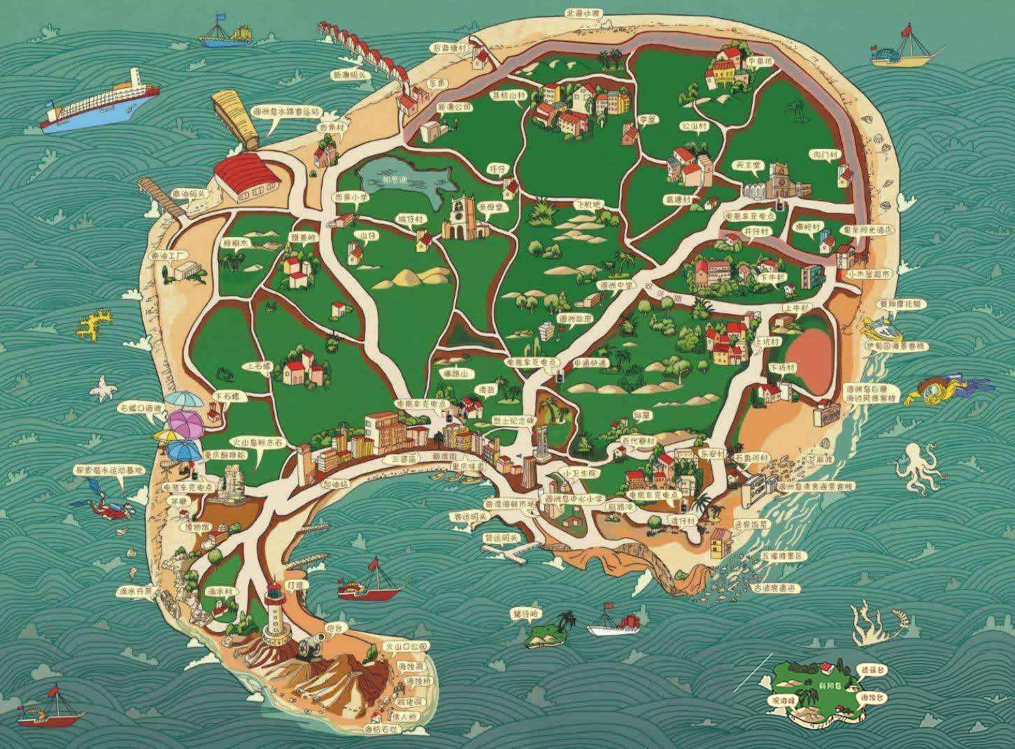 第一種:龜石海濱公園(騎上北海地區(qū)最陡的山坡)—大沙灘—漁家風情村—海參養(yǎng)殖廠—天主教堂—石螺背—海底珊瑚區(qū)(潛水)—百獸鬧海。
