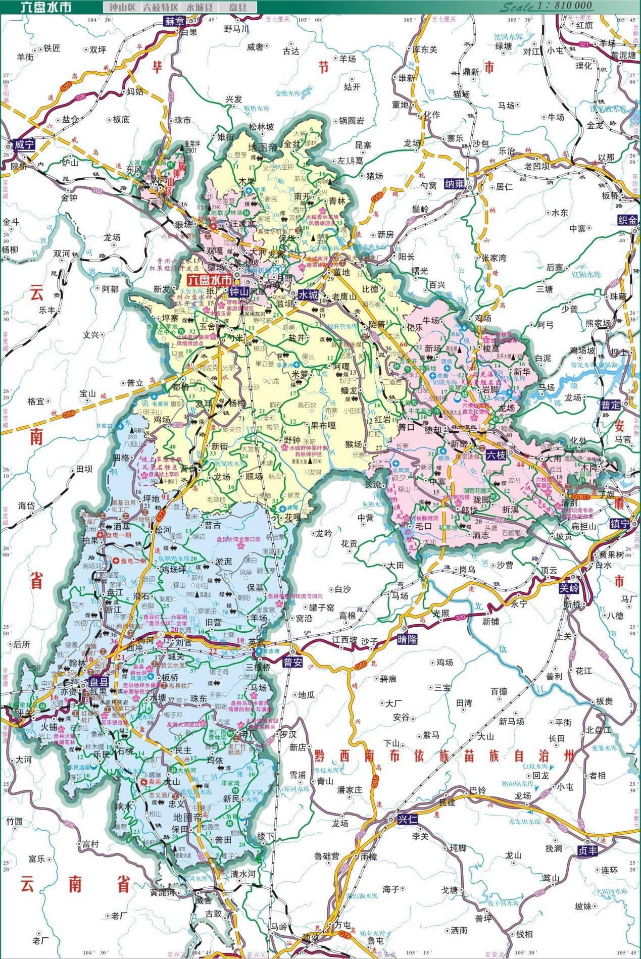 六盤水市轄2個區(qū)、1個特區(qū),代管1個縣級市: