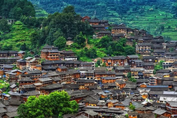 西江千戶苗寨,位于貴州省黔東南苗族侗族自治州雷山縣西江鎮(zhèn)南貴村,距雷山縣城36千米,距黔東南州州府33千米,由十余個(gè)依山而建的自然村寨相連成片,全寨原住居民有1400多戶,6000多人,其中99.5%為苗族,是全國也是全世界最大的苗寨。四面環(huán)山,重連疊嶂,梯田依山順勢直連云天,白水河穿寨而過,將西江苗寨一分為二。