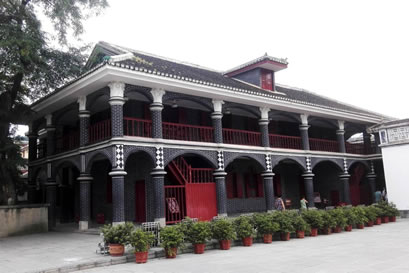 樓房座北朝南,為中西合璧磚木結(jié)構(gòu)建筑,一樓一底,歇山式屋頂,上開一“老虎天窗”廊柱卷拱護(hù)欄組合,整個(gè)主樓面闊27.75米,進(jìn)深16.95米,通高12米,是當(dāng)時(shí)遵義城里首屈一指的宏偉建筑。進(jìn)入大門,穿過門廳和牌坊后,主樓呈現(xiàn)眼前。