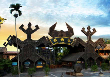 甘什嶺檳榔谷原生態(tài)黎苗文化旅游區(qū)自然景觀包括:黎族田園風(fēng)光、海南島面積最大、最古老的擯柳園、多種亞熱帶古樹(shù)、山泉溪水成多級(jí)瀑布從園中穿流而形成的怪石群。人文景觀有:“奧雅宮”(黎族頭人住的房);“隆閨屋”(黎族姑娘居住和娛樂(lè)的場(chǎng)所)等。來(lái)海南旅游觀光客可參與黎家古老的弓騖射擊,品嘗黎家竹筒飯和黎家山茶,觀賞多姿多彩的黎族歌舞。