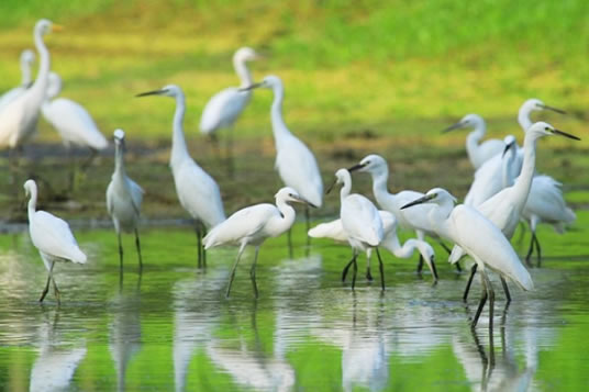 鷺鷥天堂位于海南省屋基村。村中三、四層樓高的三棵大榕樹和茂林修竹,成為萬只白鷺生活的"天堂"。白鷺又稱鷺鷥,屬鳥綱鶴形目鷺科,是世界上受保護(hù)的珍禽之一。白鷺群棲于屋基村已有多年。每年臨近清明成群結(jié)隊(duì)飛來,12月以后分批離去,在此生活八、九個(gè)月之久。為便于觀鳥,村中修建了高達(dá)6層的觀鳥樓。
