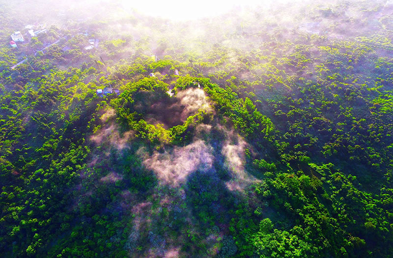 雷瓊海口火山群世界地質(zhì)公園,4A級景區(qū),世界地質(zhì)公園,國家地質(zhì)公園。位于海口市西南石山鎮(zhèn),屬地塹一裂谷型基性火山活動地質(zhì)遺跡,也是中國為數(shù)不多的全新世(距今1萬年)火山噴發(fā)活動的休眠火山群之一,具有極高的科考、科研、科普和旅游觀賞價值。 地質(zhì)遺跡主體為40座火山構(gòu)成的第四紀(jì)火山群。園區(qū)在火山錐、火山口及玄武巖臺地上發(fā)育熱帶雨林為代表生態(tài)群落,植物有1200多種,果園與火山景觀融為一體,為熱帶城市火山生態(tài)的杰出代表?偯娣e108平方公里。主要景點有馬鞍嶺、雙池嶺、仙人洞、羅京盤等。