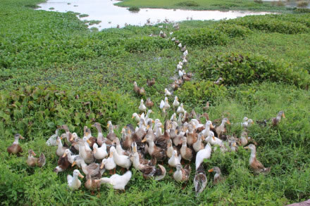 灣坡鴨,生長在稻田溫泉的鴨子與人們共同享受著這來自大自然的饋贈,喜歡在低溫泉水塘里沐浴、棲息、捕食。灣坡鴨因此成為特色美味。