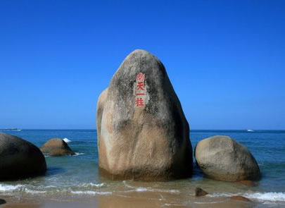 “天涯石”位于景區(qū)西北方,是景區(qū)的標志和象征。高10.8米,周長約66米,獨占海灣一角,有億萬年的歷史。
