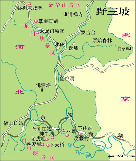 這里有酷似桂林的拒馬風光,有世界罕風的峽谷奇觀,有幽深莫測的溶洞,有神秘難解的魚泉,還有蒼勁的摩崖石刻,巍峨的長城,保存完好的平西抗日烈士陵園等人文景觀,當?shù)孛耧L古樸,獨具特色,堪稱野三坡“七十二景”景景奇特,“八十一峰”峰峰壯觀,是一處綜合性的自然美的整體,重點突出一個“野”字,即登野山,觀野景,宿野舍,食野味,玩野趣。素有“世外桃源”之稱。