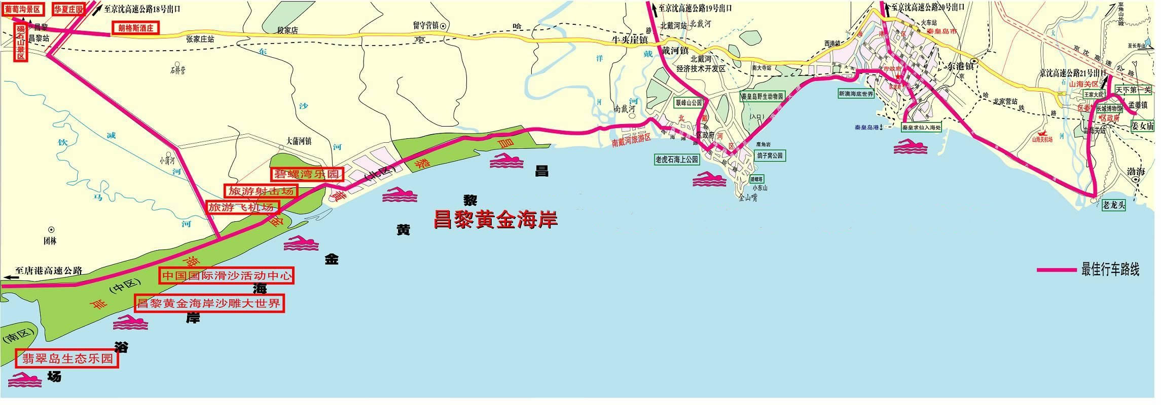 位于河北省昌黎縣東南面的渤海岸邊,海岸線全長52.1公里,具有沙細(xì),灘軟,水清,潮平的特點(diǎn),是進(jìn)行海水浴、陽光浴、沙浴、森林浴、空氣浴的理想地點(diǎn)。