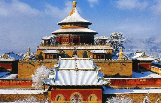 避暑山莊周圍的喇嘛教寺廟群是依照西藏、新疆喇嘛教寺廟的形式修建的,以供邊疆少數(shù)民族的貴族朝覲皇帝時(shí)禮佛之用。共12座,其中的8座由清政府直接管理,故被稱為“外八廟” 。廟宇按照建筑風(fēng)格分為藏式、漢式和漢藏結(jié)合式三種,它們?nèi)诤狭藵h、藏等民族建筑藝的精華,氣勢宏偉,極具皇家風(fēng)范。這些風(fēng)格各異的寺廟是當(dāng)時(shí)清政府利用宗教作為籠絡(luò)手段來團(tuán)結(jié)蒙古、新疆、西藏等地區(qū)少數(shù)民族而修建的。它們多利用向陽山坡層層修建,主要殿堂聳立突出、雄偉壯觀。