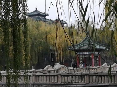 東湖西岸邊就是武靈叢臺,登上叢臺極目遠(yuǎn)眺,可以看到西邊的太行山和西南趙國都城遺址趙王城蜿蜒,西北便是趙國的鑄箭爐、梳妝樓和插箭嶺的遺址。叢臺西面是一片花圃植物區(qū)名叫槐園,內(nèi)設(shè)立一座亭臺與城堡郵票發(fā)行紀(jì)念碑,南面與承界橋相隔是二度梅園,西南通過曲蘭橋,可登苑在亭,就是叢臺中湖,湖中有一建筑就是望諸榭。中湖西岸邊是梧桐苑和游船碼頭區(qū),中湖南岸就是百花園和袨服亭。