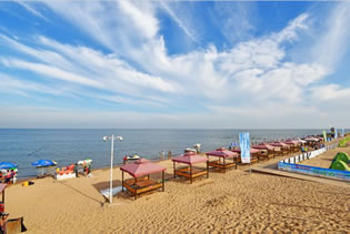 廣場(chǎng)緊靠沙灘浴場(chǎng),浴場(chǎng)具有沙細(xì)、灘緩、水清、潮平四大特點(diǎn),自然環(huán)境優(yōu)美,游客在這里可以體驗(yàn)海水浴、熱沙浴、也可以去進(jìn)行沙灘排球、沙灘足球、沙灘拔河、拓展訓(xùn)練等游樂活動(dòng)。到了晚上,在海螺廣場(chǎng)擇一位置,看海上的夕陽如何消失,看海上明月共潮生。支幾頂帳篷,和三五好友談天說地、參加篝火晚會(huì),品嘗烤全羊等美味佳肴,最后和大海一起等待日出,感受太陽的心跳。