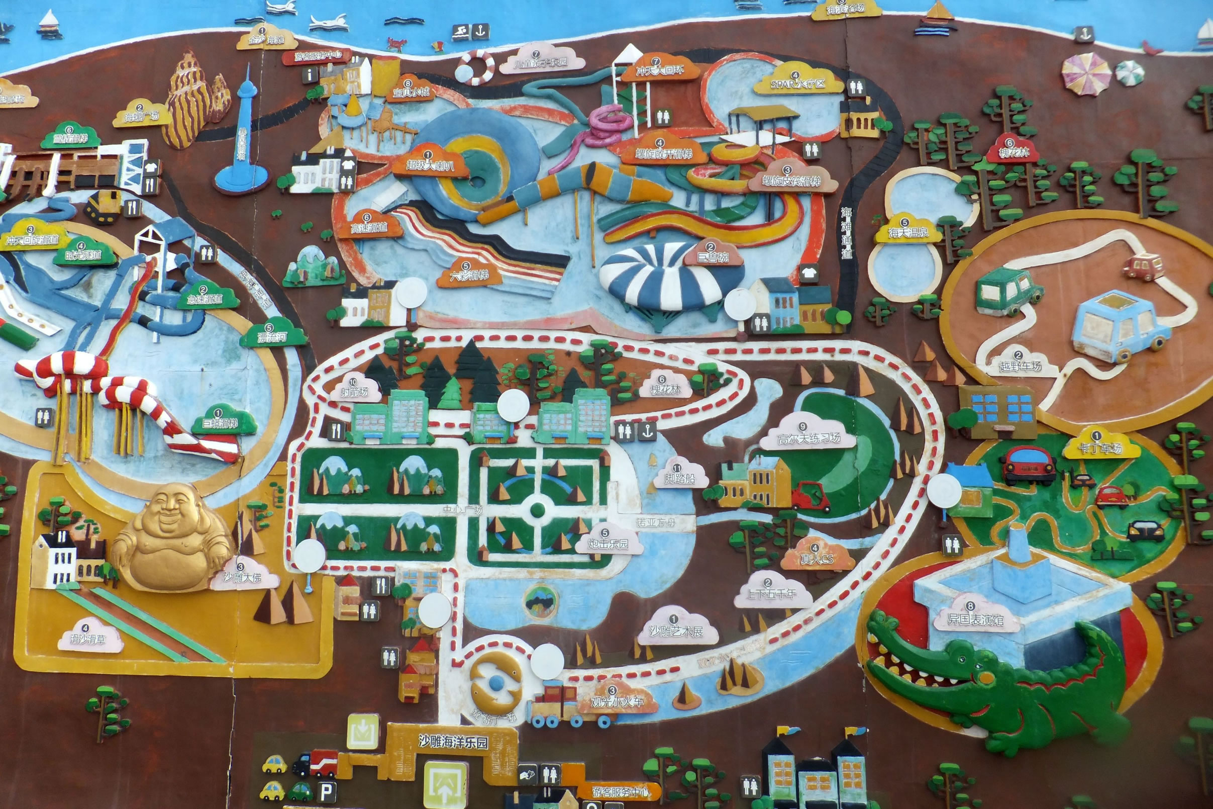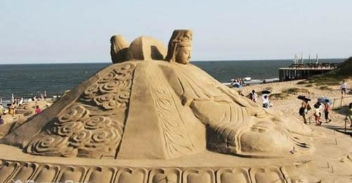 沙雕作品一覽:杏壇春秋、大唐三藏、龜、韓愈、鑒真六渡、老子出關(guān)、李白、蓮花公主、清明上河圖、日冕、盛世通寶、萬里長(zhǎng)城、炎黃二帝、沙雕大佛、彩雕、沙雕藝術(shù)群等。