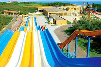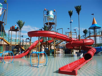 水樂園1期:超級(jí)大喇叭、高速滑道、六彩滑梯、寶貝水城、螺旋敞開滑梯、巨獸碗、沖天大回環(huán)。