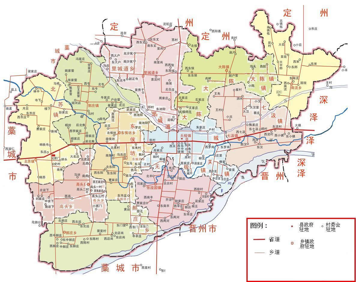 無極縣轄6個鎮(zhèn)、4個鄉(xiāng)、1個民族鄉(xiāng):