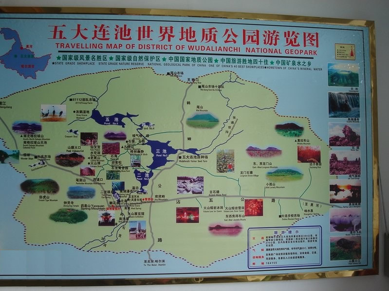 豐水期面積在21.5平方公里,最深處可達(dá)36米以上。池底是熔巖和砂底各占一半。開闊的水面倒映著14座火山,景色十分優(yōu)美。三池子的傳說多,景觀也最多,夏季“群山倒影”,冬天“三池冰斷”。湖泊兩岸,一面是壯觀的新期火山熔巖臺地,一面是古火山綠色田園風(fēng)光。 白龍湖是重要的“地質(zhì)界湖”,湖區(qū)西岸是新期火山熔巖地貌,東岸是遠(yuǎn)古泥沙巖地貌,兩岸穿越億萬年時光隧道,風(fēng)光各異,可謂是“一湖二景”。白龍湖是民間的“傳奇湖泊”:有湖怪之迷、暗河之迷、冰斷之迷、湖底金沙之迷,有黑龍白龍的傳說、蛤蜊城的故事、連池仙子的神話。