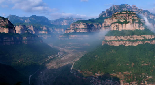 太行大峽谷境內(nèi)斷崖高起,群峰崢嶸,臺(tái)壁交錯(cuò),蒼溪水湍,流瀑四掛,是“北雄風(fēng)光”的典型代表。核心景區(qū)包括:泉潭疊瀑桃花谷、百里畫(huà)廊太行天路、太行之魂王相巖、原始生態(tài)峽谷漂流、人間仙境仙霞谷等。
