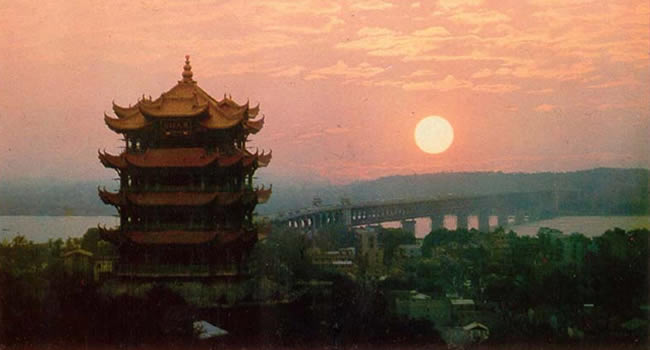 李白寫下的詩詞與黃鶴樓有關的不下五首,其中有一首《與史郎中欽聽黃鶴樓上吹笛》:“一為遷客去長沙,西望長安不見家。黃鶴樓中吹玉笛,江城五月落梅花!睆拇,“江城”便成為武漢的美稱。