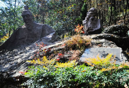 “撫琴石”,長(zhǎng)8米,寬5米,石頭左邊是一個(gè)人在彈琴,右邊是一個(gè)人在聽(tīng)琴,這就是俞伯牙和鐘子期當(dāng)年“高山流水遇知音”的故事的再現(xiàn)。