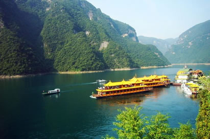 B線:游客中心→風(fēng)雨長廊→時空隧道→鼓樂堂→土家風(fēng)情街→旅游碼頭→徒步游覽倒影峽沿途參觀四廊、四道四臺、過龍門等景點→乘船進入主航道→船觀隔河巖大壩、仙人寨、環(huán)北島參觀游覽→返回游客中心