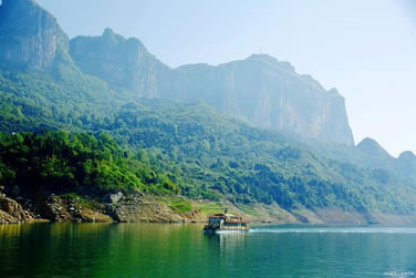 清江支流丹水,因其水淺,清澄得可見河床鋪滿的亂石,兩岸山巒起伏,郁郁蔥蔥,現(xiàn)成為游人漂流的絕佳去處。丹水最寬處有十幾米,最窄處僅四五米,大雨過后,河水水量較大,水流湍急,是漂流的好時候,但較危險。2-3人乘坐一充氣皮筏從上游順流而下,在水面闊、水流緩處,可一邊蕩漿一邊仰望兩岸幽靜的景色,或低頭搜尋水底的小魚小蟹;而水面窄處,水流因亂石的阻礙變得浪花飛濺,駕著皮筏,一不小心,就會撞上大石頭,有時皮筏因水流太急而不可控制,那種緊張刺激的感受,是長期生活在城市中的人們很難體會到的。與小三峽、神農(nóng)溪漂流顯著不同的是,小三峽乘機動船,機器的噪聲,很難讓人靜心去欣賞其山其水的瑰麗,神農(nóng)溪是由纖夫拉纖,將“豌豆角”型木船拉至上游,然后由船工撐船漂流而下,游人只能仰望山的幽奇,水的清亮,卻不能親自感受駕舟乘風(fēng)破浪的驚險刺激。