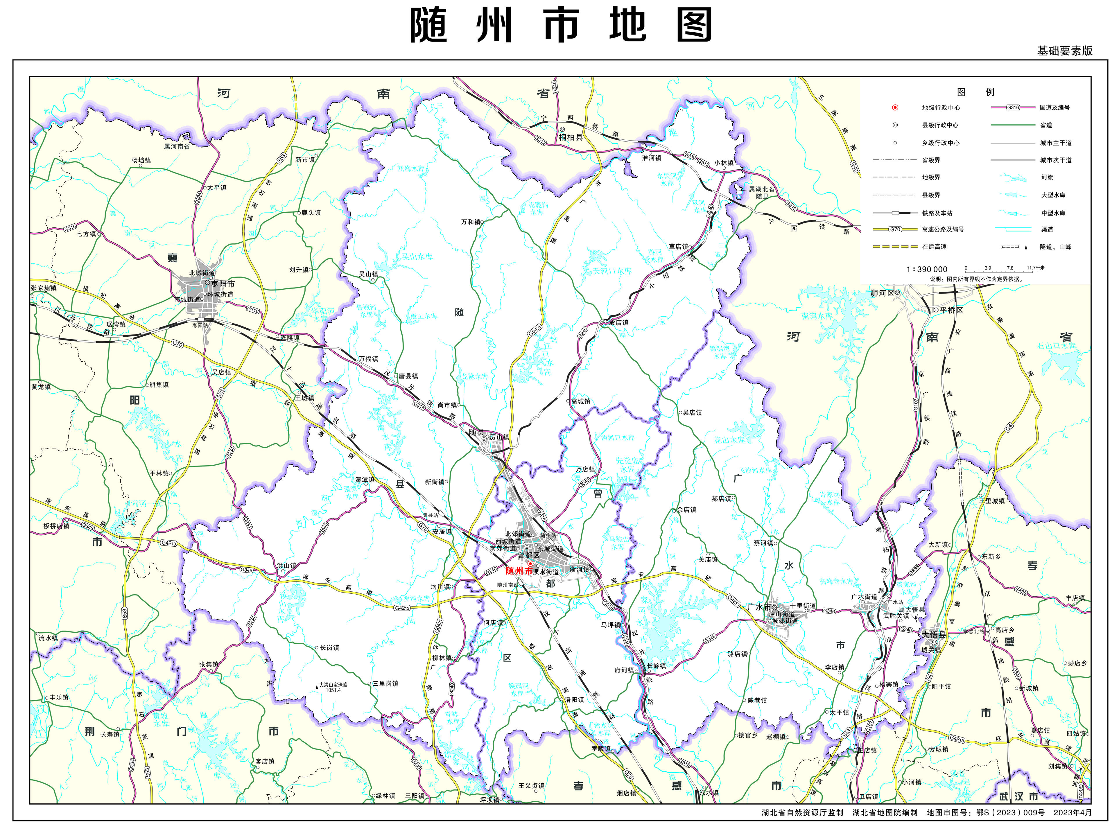 隨州市位于湖北省北部,地處長(zhǎng)江流域和淮河流域的交匯地帶,東承武漢,西接襄陽(yáng),北面與河南省南陽(yáng)、信陽(yáng)二市毗鄰,南面與湖北省江漢平原的京山市、鐘祥市相連。全市南北長(zhǎng)約130千米,東西寬約105千米,總面積9636平方千米。