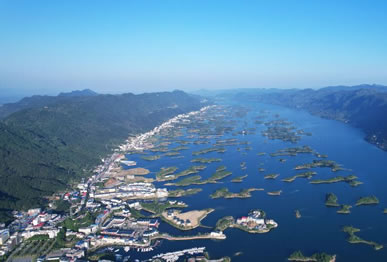 春季,綠水為底,滿目映山紅色景色秀美;夏日,碧水荷塘,杉林成海,氣候涼爽,適宜避署;秋季,百舸爭(zhēng)流,漁歌唱晚,一派勤勞致富的景象;冬日,晨霧繚繞,千島競(jìng)季,蔚為壯觀。