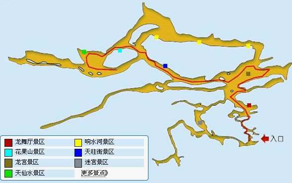 黃龍洞以立體的洞穴結(jié)構(gòu),龐大的洞穴空間,寬闊的廳堂及數(shù)以萬計(jì)的石筍,高大的洞穴瀑布,水陸兼?zhèn)涞挠斡[線等優(yōu)勢構(gòu)成了極具特色的游覽洞穴,洞內(nèi)有1庫、2河、3潭、4瀑、13大廳、98廊,以及幾十座山峰,上千個白玉池和近萬根石筍。由石灰質(zhì)溶液凝結(jié)而成的石鐘乳、石筍、石柱、石花、石幔、石枝、石管、石珍珠、石珊瑚等遍布其中,無所不奇,無奇不有,仿佛一座神奇的地下“魔宮”。黃龍洞現(xiàn)已開放有龍舞廳、響水河、天柱街、天仙瀑、龍宮等6大游覽區(qū),主要景觀有定海神針、萬年雪松、龍王寶座、火箭升空、花果山、天仙瀑布、海螺吹天、雙門迎賓、滄海桑田、黃土高坡等100多個。