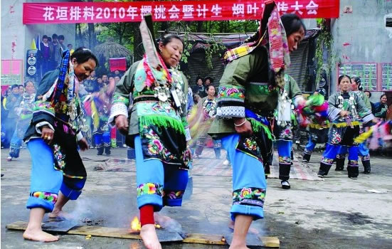 燕子山位于花垣縣排料鄉(xiāng)鏡內(nèi)。山上樹(shù)木參天,山北有500多米高的峭壁,七眼泉水從半壁吐出,瀉向深谷,每當(dāng)霧氣從谷底升起,人們就根據(jù)它的色彩判斷這一帶的天氣,白霧騰升——晴天,青霧飛出——陰天,黑霧翻滾——大雨即來(lái)。 |