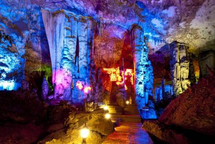 黃龍洞位于湖南省張家界市核心景區(qū)武陵源風(fēng)景名勝區(qū)內(nèi),是世界自然遺產(chǎn)、世界地質(zhì)公園武陵源的有機(jī)組成部分,屬典型的喀斯特巖溶地貌,以其龐大的立體結(jié)構(gòu)洞穴空間、豐富的溶洞景觀、水陸兼?zhèn)涞挠斡[觀光線路獨(dú)步天下,被列為國際旅游洞穴會員、全國35個王牌景點(diǎn)之一、中國首批AAAA級旅游景區(qū)、中國旅游首批知名品牌、中國馳名商標(biāo)、湖南省最佳旅游景區(qū)、張家界旅游精品線之一,享有“世界溶洞奇觀”、“世界溶洞全能冠軍”之美譽(yù),2005年被評選為“中國最美旅游溶洞”。