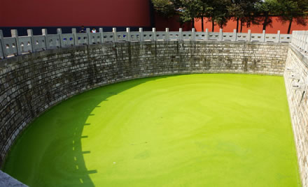 泮池位于萬(wàn)仞宮墻北側(cè),水池為半圓形,周?chē)惺瘷跅U,稱(chēng)為“泮池”,是文廟標(biāo)志性建筑之一。泮池下部原有兩組涵洞與宮墻外的運(yùn)瀆相通,池水終年不竭。抗戰(zhàn)期間泮池曾被填平,1970年重新開(kāi)挖,現(xiàn)與運(yùn)瀆已不再相通。