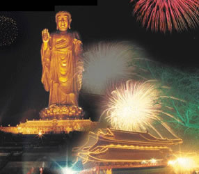 靈山大佛于 1997年11月15日落成開光,海內(nèi)外高僧大德及各地信眾千萬余人親臨現(xiàn)場。是日慈云瑞靄籠罩大佛金身,至開光儀式舉行,祥云飄升,大霧竟奇跡般地散去,預示法輪常轉佛光昔照。