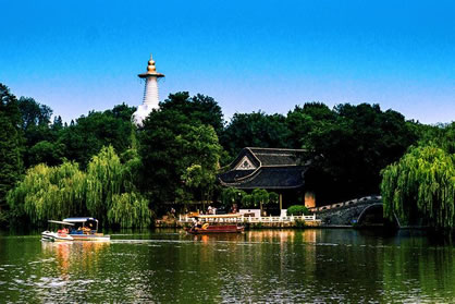 瘦西湖(Slender West Lake)原名保障湖,位于江蘇省揚州市城西北郊,總面積2000畝,水上面積700畝,游覽區(qū)面積100公頃。