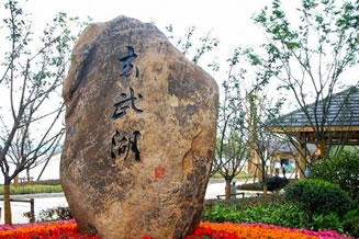 郭璞墩位于環(huán)洲西端。存石亭一座,仙墩置石一塊。是玄武湖地勢最高處。郭璞墩為東晉著名文學家、科學家郭璞的衣冠冢。郭璞景區(qū)建設以東晉時期為歷史背景,體現(xiàn)六朝風格,沿軸線建設了郭璞雕像、不老門、等景觀,彰顯郭璞仙墩古樸隆重之氣。