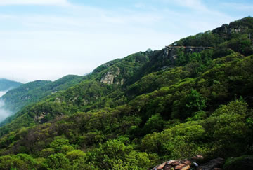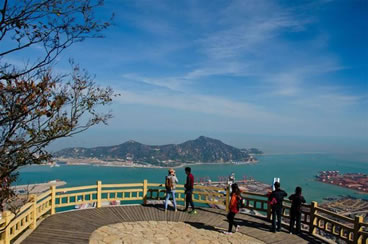 蓬壺仙境—二桅尖位于后云臺山北麓,隔鷹游海峽與連島對峙,緊鄰大桅尖,海拔503.7米。這里山勢雄峻、重巒疊嶂,山海相連、峰高海闊,海波與山色相映,水汽嵐光、變幻莫測,云蒸霞蔚、氣象萬千,是展示連云港東方大港、山海風(fēng)光的精華所在。主要景點(diǎn)有:“海天一覽”、“一線天”、“迎曙峰”、“凌空踏浪”、“云中漫步”、“云臺神鷹”、“神龜探!薄ⅰ霸婆_冰瀑”、“鐵血峰臺”等。其中,“云臺鋪!、“曙峰旭照”、“海市蜃樓”等獨(dú)特景觀,久負(fù)盛名。景區(qū)容“雄、奇、險(xiǎn)、幽、秀”于一體,集“山、海、港、城、島”于一覽,被譽(yù)為江蘇省獨(dú)一無二的“山海奇觀”。