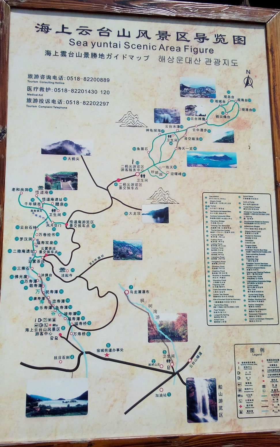 云臺山古稱郁州山,唐宋時(shí)稱蒼梧山。唐李白詩:“明月不歸沉碧海,白云愁色滿蒼梧!彼翁K軾詩:“郁郁蒼梧海上山,蓬萊方丈有無間”,寫的都是云臺山。她原來只是黃海中的一列島嶼,18世紀(jì)方與大陸相連。遂形成峻峰深澗,奇巖坦坡,山光水色,獨(dú)具神姿 ,被譽(yù)為:“海內(nèi)四大名靈”之一。明嘉靖年間道教興盛 ,道士云集達(dá)兩萬之眾,山又被譽(yù)為“七十一福地。