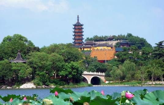 金山,海拔43.7米,占地面積41.6公頃。金山風(fēng)景幽絕,形勝天然,自古為我國(guó)游覽勝地之一。古代金山原是屹立于長(zhǎng)江中流的一個(gè)島嶼,有“江心一朵美芙蓉”之稱(chēng)譽(yù)。唐代張祜描述為“樹(shù)影中流見(jiàn),鐘聲兩岸聞”。北宋沈括贊頌曰:“樓臺(tái)兩岸水相連,江北江南鏡里天!痹瓰閾P(yáng)子江中的一個(gè)島嶼,由于“大江東流”,至清光緒末年(1903年)左右與陸地連成一片。2012年,焦山與金山、北固山共同組成的鎮(zhèn)江三山風(fēng)景名勝區(qū),被中國(guó)文化和旅游部評(píng)定為中國(guó)國(guó)家AAAAA級(jí)旅游景區(qū)。