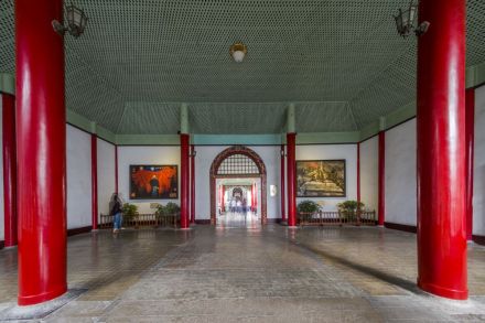 總統(tǒng)府建筑群的主軸線,由門(mén)樓、大堂、二堂、八字廳、會(huì)客廳、麒麟門(mén)、政務(wù)局樓、子超樓組成。建筑風(fēng)格前半部分以中式為主,后半部分則以西式居多。