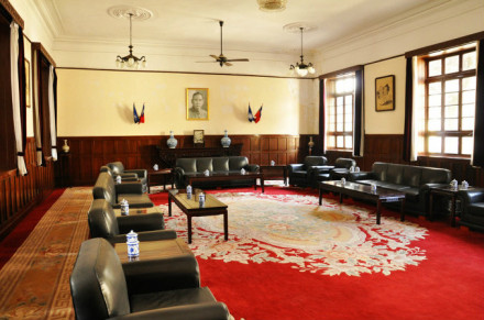 總統(tǒng)府會(huì)客室是國(guó)民政府和總統(tǒng)府時(shí)期,在舉行正式儀式前,蔣介石、林森或李宗仁等在此短暫休息的地方,同時(shí)也兼作內(nèi)賓接待室。內(nèi)有一套間作為蔣介石的臨時(shí)辦公室,有時(shí)蔣介石不到總統(tǒng)辦公樓而在此辦公。1946年國(guó)共談判也曾在這里舉行。1949年2月27日,“代總統(tǒng)”李宗仁曾在此會(huì)見(jiàn)由北平歸來(lái)的“上海和平代表團(tuán)”顏惠慶、邵力子、章士釗等一行。