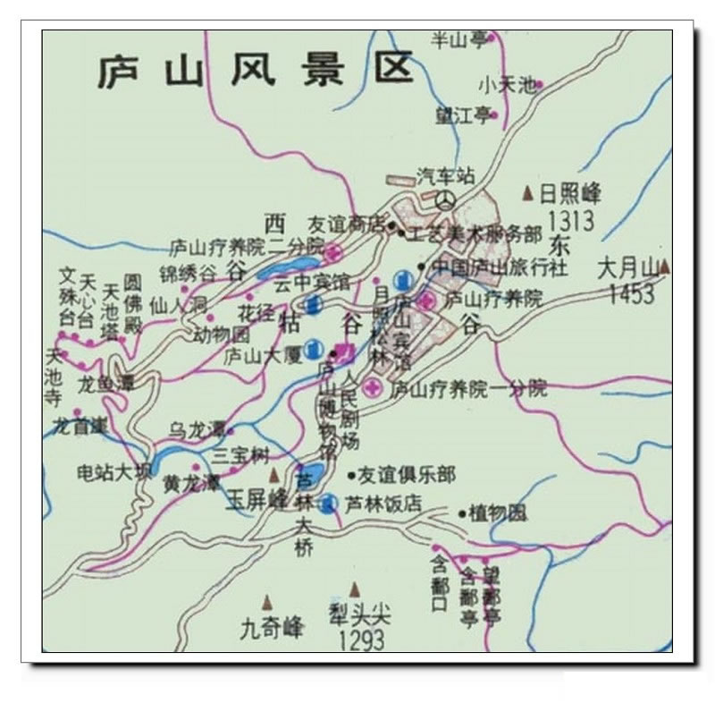 1 :北山公路-北山園門-小天池-望江亭-花徑-如琴湖-天橋-錦繡谷-仙人洞-大天池-蘆林湖-會(huì)址-東谷名人別墅-美廬-周恩來(lái)紀(jì)念室-牯嶺街
