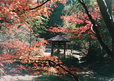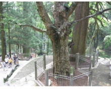 由黃龍?zhí)堆亓珠g石階上行約300米即到三寶樹。三寶樹海拔1027米,三棵參天古樹凌空聳立,二棵是柳杉,樹齡600余年,一棵為銀杏,樹齡1600年,主干數(shù)人合抱不攏,形同寶塔。三寶樹相傳為千年古可柯,樹下石碑上鐫有“晉僧曇詵手記”6字,寶樹已被重點(diǎn)保護(hù)。